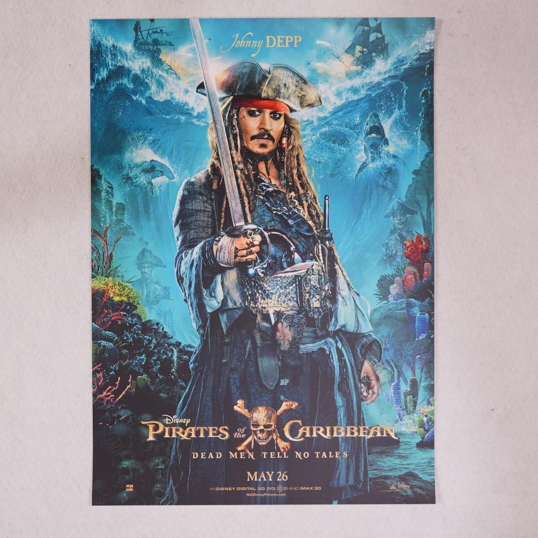ウィル役のオーランド・ブルーム、エリザベス役のキーラ・ナイトレイ、バルボッサ役のジェフリー・ラッシュが再集結、サラザール役をハビエル・バルデム、ヘンリー役を「マレフィセント」のブレントン・スウェイツ、天文学者カリーナ役を「メイズ・ランナー」のカヤ・スコデラーリオがそれぞれ演じる。こちらは貴重なジャックのキャラクターポスターになります。米国の映画ショップで入手。