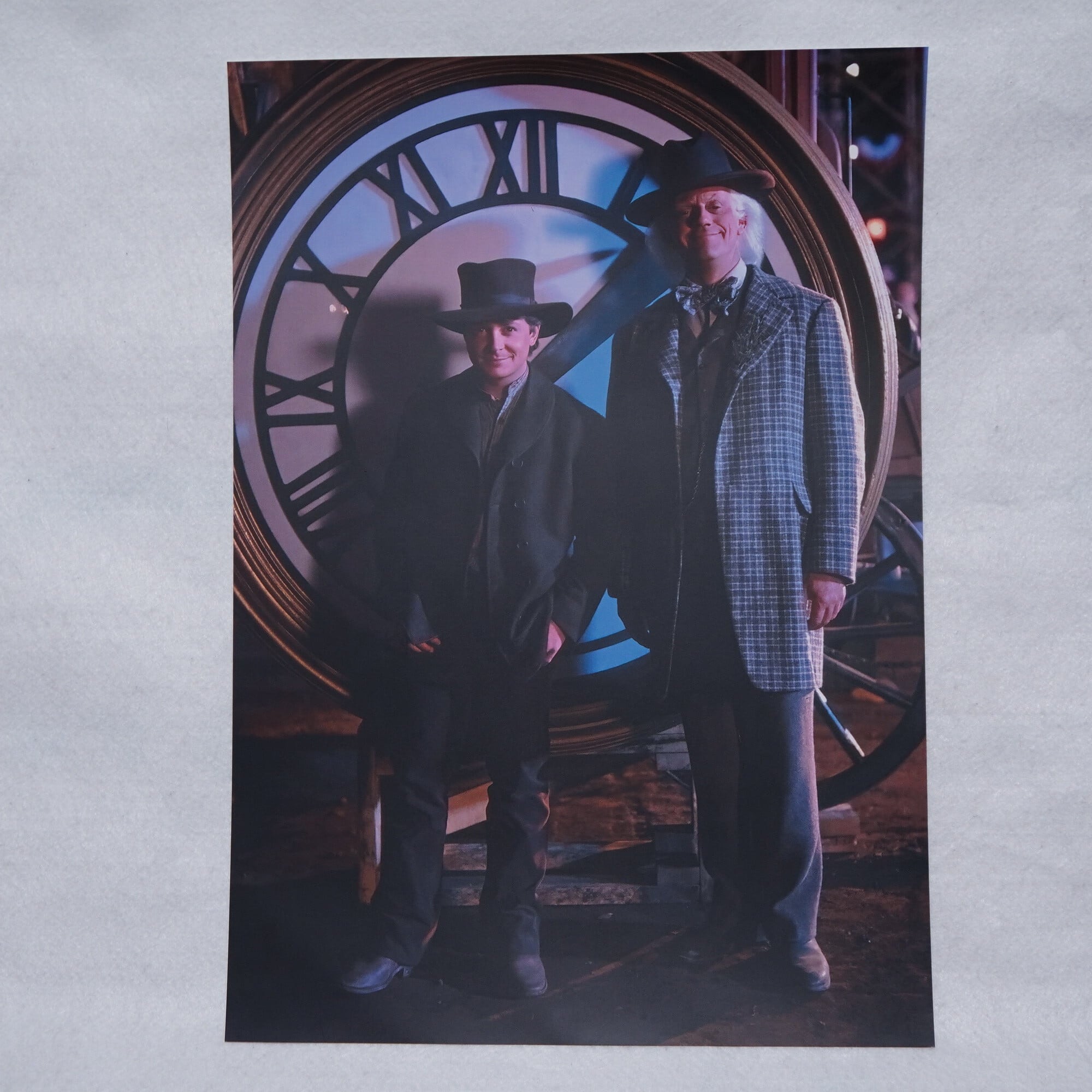 こちらは3作目のヒルバレーの建設途中の時計台の前で撮影したドクとマーティーの記念写真のスチルポスターになります。