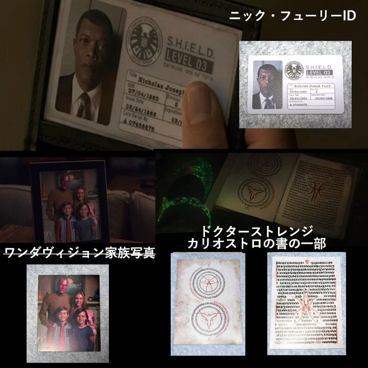 アイアンマン(トニースターク)、キャプテン・アメリカ、マイティ・ソー、ハルク、ブラックウィドウ、ホークアイの6名の出演が最後となった『アベンジャーズ エンドゲーム』ですが、こちらはシールド時代のブラックウィドウ、ホークアイ、ファルコンのバイオグラフィ極秘資料ファイルやアントマンの資料、アイアンマン、コールソン、ニックフューリー関係の小道具レプリカのセットになります。